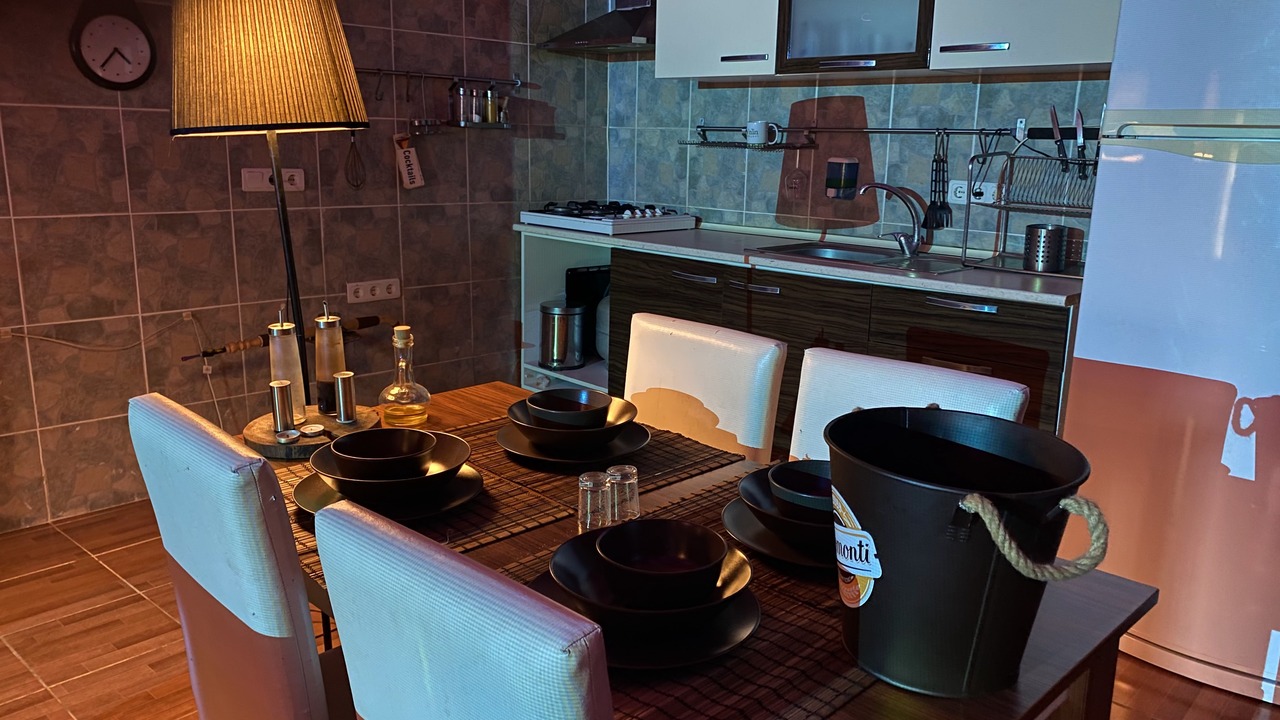 Mutfağında kullanabileceğiniz tüm eşyalar mevcuttur. Banyosu standart duşa kabindir ve içerisinde kullanımınıza sunulmuş bir de çamaşır makinesi vardır.