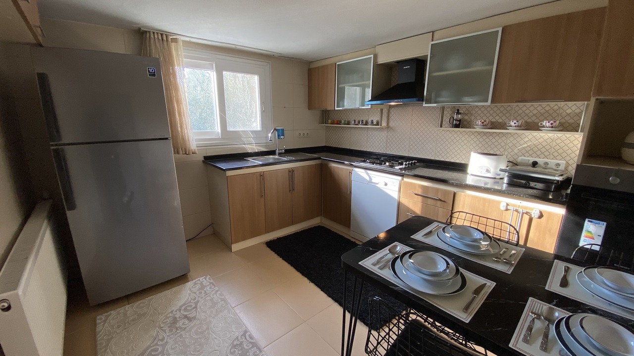 İki katlı ve içten merdivenli dublex bir evdir. Alt katta oturma odası , mutfak ve bir yadak odası vardır. Yataklar tek kişiliktir ama birleştirilebilir. Ayrıca mutfağında kullanabileceğiniz bütün gereçler vardır. Ankastre set, fırın, airfreyer, tencere tava takımları, çatal kaşıklar. Oturma odasında 60″ akıllı TV vardır.